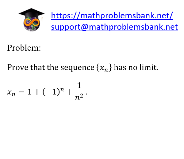 Problem: Prove that the sequence \( \left\{x_{n}\right\} \) has no limit. \[ x_{n}=1+(-1)^{n}+\frac{1}{n^{2}} \text {. } \]