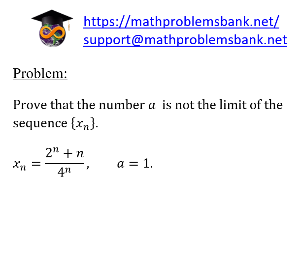 Problem: Prove that the number \( a \) is not the limit of the sequence \( \left\{x_{n}\right\} \). \[ x_{n}=\frac{2^{n}+n}{4^{n}}, \quad a=1 . \]