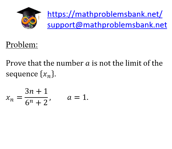 Problem: Prove that the number \( a \) is not the limit of the sequence \( \left\{x_{n}\right\} \). \[ x_{n}=\frac{3 n+1}{6^{n}+2}, \quad a=1 \text {. } \]