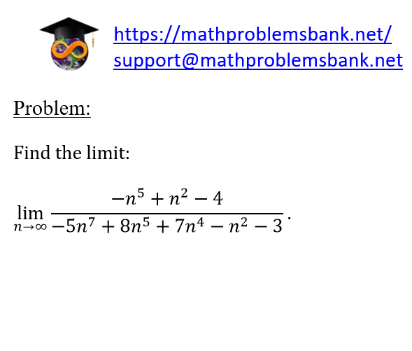 Problem: Find the limit: \[ \lim _{n \rightarrow \infty} \frac{-n^{5}+n^{2}-4}{-5 n^{7}+8 n^{5}+7 n^{4}-n^{2}-3} . \]