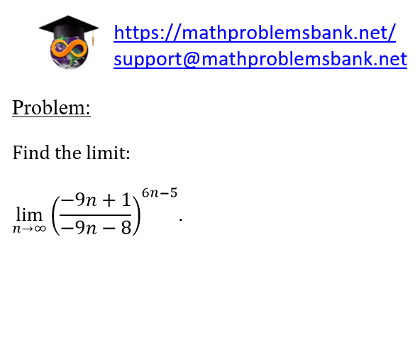 Problem: Find the limit: \[ \lim _{n \rightarrow \infty}\left(\frac{-9 n+1}{-9 n-8}\right)^{6 n-5} \text {. } \]