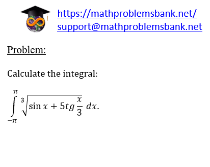 (3) Problem: Calculate the integral: \[ \int_{-\pi}^{\pi} \sqrt[3]{\sin x+5 \operatorname{tg} \frac{x}{3}} d x \]
