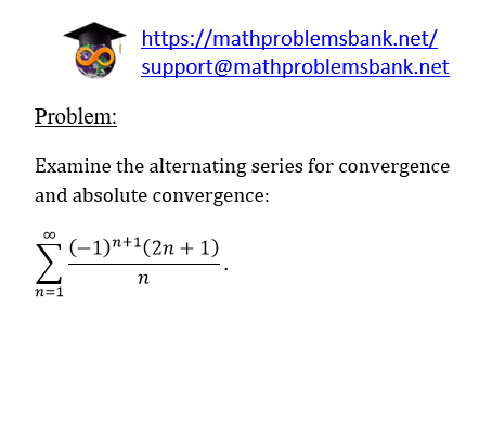 Problem: Examine the alternating series for convergence and absolute convergence: \[ \sum_{n=1}^{\infty} \frac{(-1)^{n+1}(2 n+1)}{n} \text {. } \]