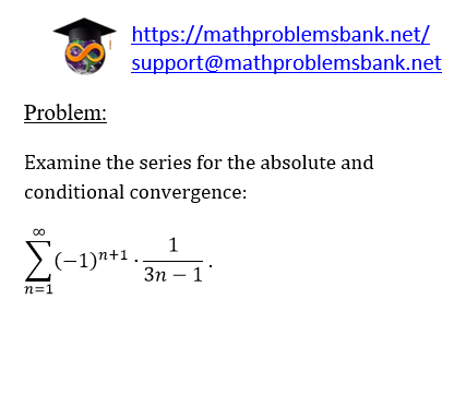 Problem: Examine the series for the absolute and conditional convergence: \[ \sum_{n=1}^{\infty}(-1)^{n+1} \cdot \frac{1}{3 n-1} \text {. } \]
