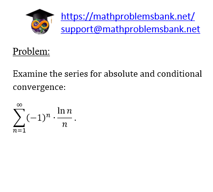 Problem: Examine the series for absolute and conditional convergence: \[ \sum_{n=1}^{\infty}(-1)^{n} \cdot \frac{\ln n}{n} . \]