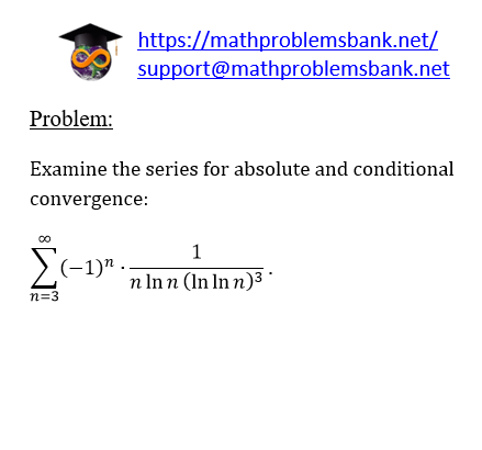 Problem: Examine the series for absolute and conditional convergence: \[ \sum_{n=3}^{\infty}(-1)^{n} \cdot \frac{1}{n \ln n(\ln \ln n)^{3}} . \]