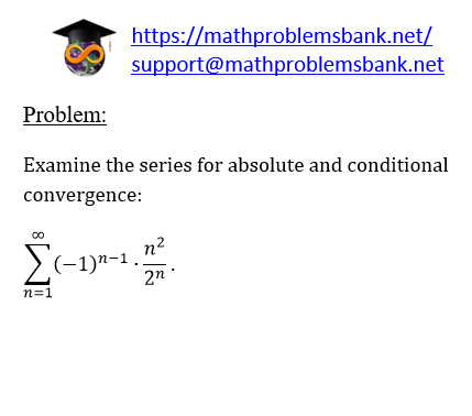 Problem: Examine the series for absolute and conditional convergence: \[ \sum_{n=1}^{\infty}(-1)^{n-1} \cdot \frac{n^{2}}{2^{n}} . \]