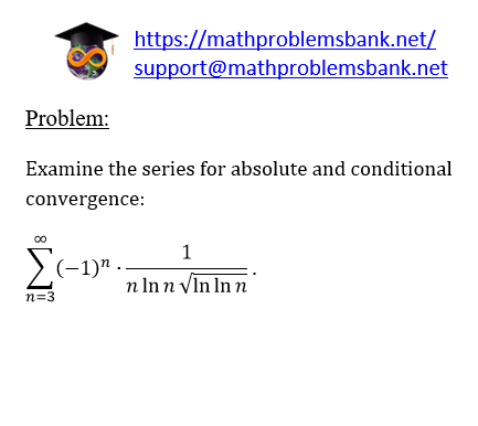 Problem: Examine the series for absolute and conditional convergence: \[ \sum_{n=3}^{\infty}(-1)^{n} \cdot \frac{1}{n \ln n \sqrt{\ln \ln n}} \]