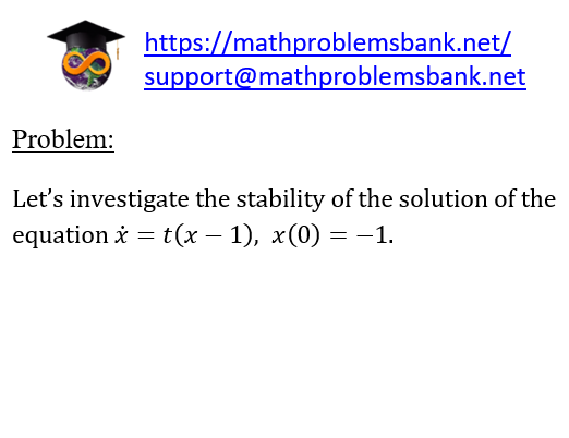 Problem: Investigate the stability of the solution of the equation \( \dot{x}=t(x-1), x(0)=1 \).