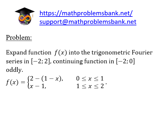 Problem: Expand function \( f(x) \) into the trigonometric Fourier series in \( [-2 ; 2] \), continuing function in \( [-2 ; 0] \) oddly. \[ f(x)=\left\{\begin{array}{ll} 2-(1-x), & 0 \leq x \leq 1 \\ x-1, & 1 \leq x \leq 2 \end{array} .\right. \]