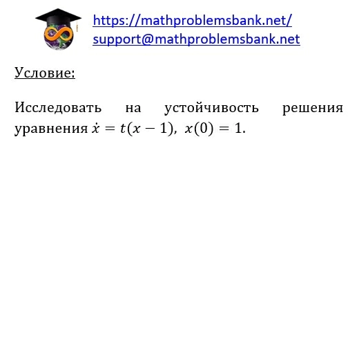 условие: Исследовать на устойчивость решения уравнения \( \dot{x}=t(x-1), x(0)=1 \).