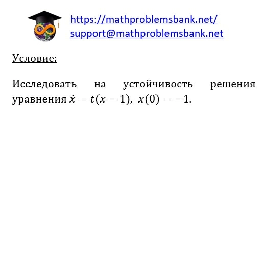 Условие: Исследовать на устойчивость решения уравнения \( \dot{x}=t(x-1), x(0)=-1 \).